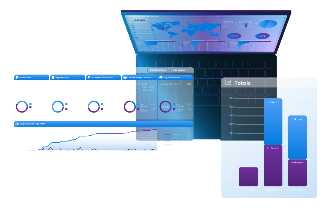 Manage all aspects of your event data, from personalized invitation emails, webinars, housing & travel, to post-event surveys in a single, intuitive and permissions-based solution. Real-time, 24/7 availability.