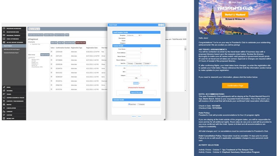 Personalized email marketing before, during and after your event. Easy set up with drag & drop Studio Designer for look & feel consistent with the overall program branding.